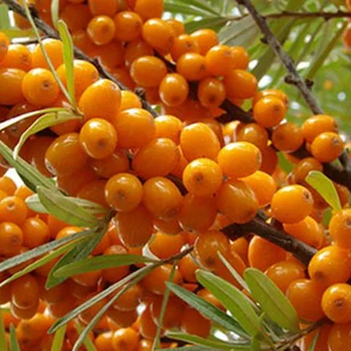 Облепиха Витаминная известна своим высокорослым типом роста и овальной компактной кроной. Эти кустарники достигают высоты до 300 см и хорошо адаптируются на открытых солнечных участках. Слабокоричневая кора и толстые, прямые побеги придают растению особую декоративность, а крупные светло-зеленые листья с серебристым оттенком добавляют эффектности вашему саду.